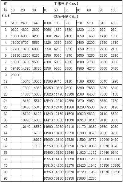 3、磁場參數表